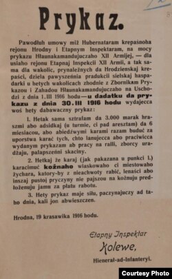 1916 год. «Karać sztrafam da 3.000 marak hraszmi abo adsidkaj»