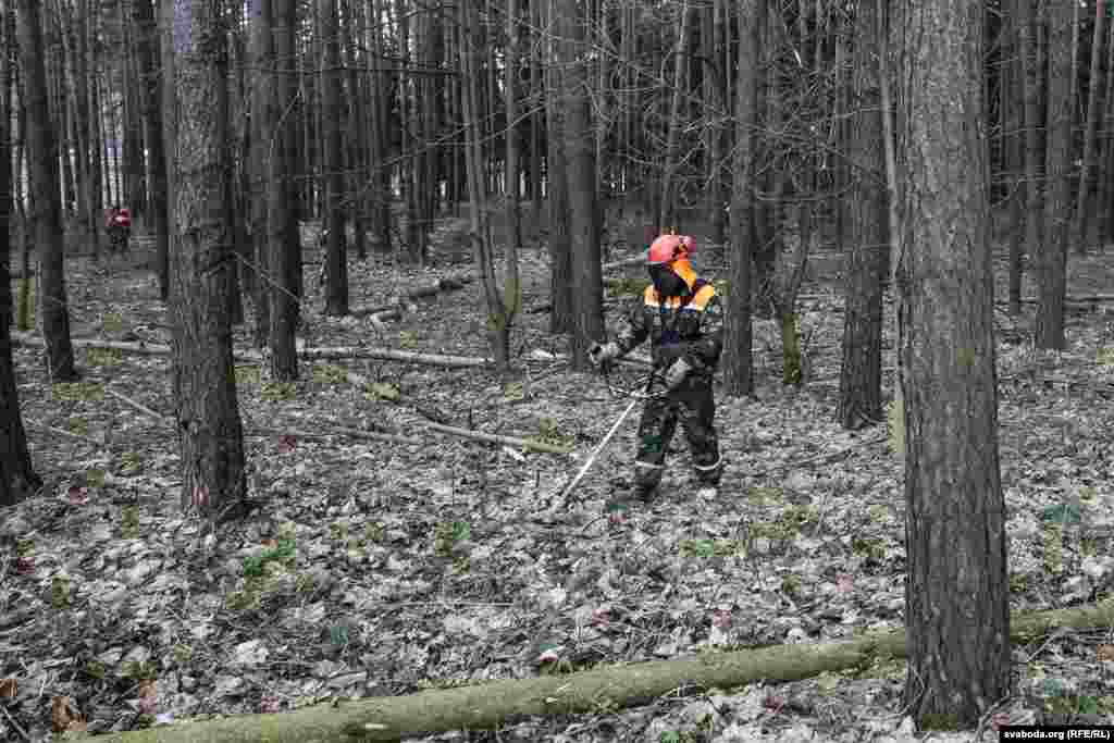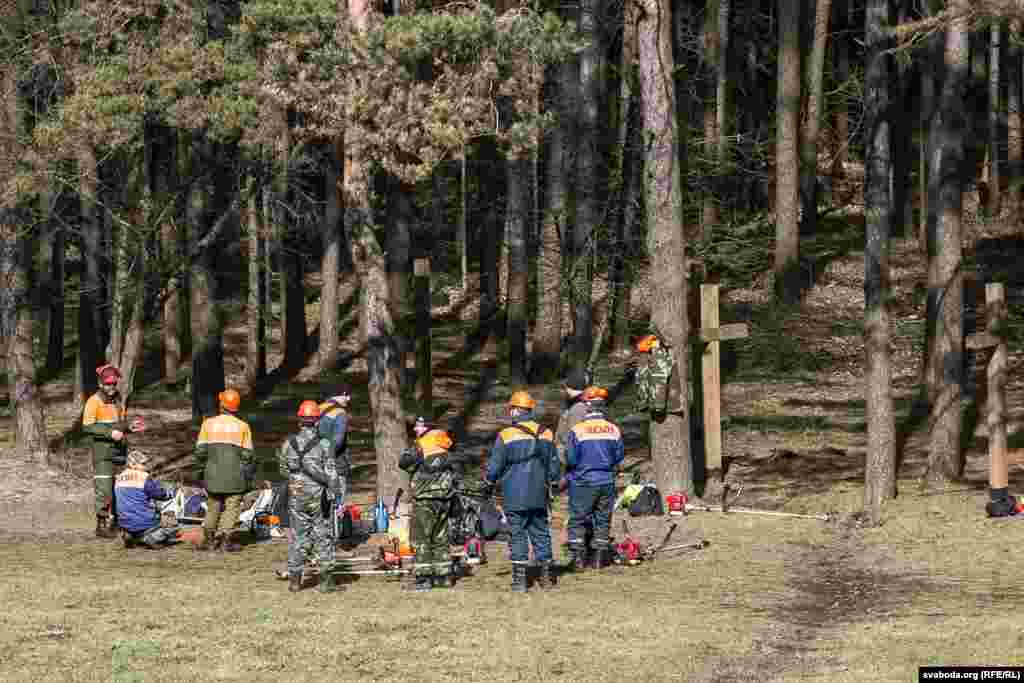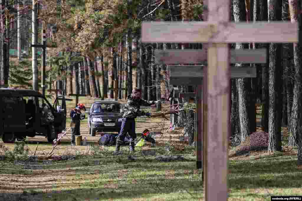 У Курапатах работнікі гаспадарчых службаў пілуюць хворыя дрэвы, а таксама зразаюць гальлё і хмызьняк.