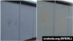 Фашысцкую сымболіку на паветцы прыпынку грамадзкага транспарту — акурат насупраць Крыжа памяці — зафарбавалі працаўнікі дарожнага прадпрыемства пасьля тэлефанаваньня журналіста Свабоды.