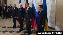 Першым у Менск яшчэ апоўдні прыбыў міністар замежных спраў Украіны Паўло Клімкін. Бліжэй да 16-й гадзіны прыехалі міністар замежных спраў Расеі Сяргей Лаўроў, за ім кіраўнік зьнешнепалітычнага ведамства Нямеччыны Франк-Вальтэр Штайнмаер і міністар замежных спраў Францыі Жан-Марк Эйро.