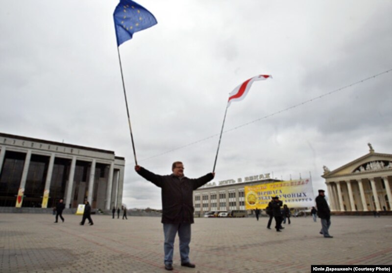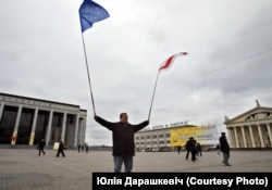 Івашкевіч: «Я трымаю сьцяг. Бачылі фотаздымак — стаіць Івашкевіч на плошчы і трымае сьцяг, адзін бел-чырвона-белы, другі эўрапейскі? І людзі сьмяюцца — во, выйшаў адзін, ну і што ты адзін выйшаў? Герой знайшоўся. А каго ж ты за сабой павёў? А я кажу: нікога нікуды не завядзеш, калі ён таго ня хоча. Але павінен хтосьці трымаць сьцяг. Каб у іншых людзей заўсёды быў арыенцір, што калі захочацца, я далучуся».