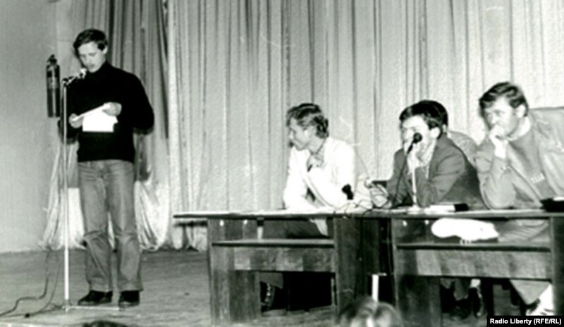 Віктар выступае на І Вальным Сойме беларускіх суполак, в. Палачанка Валожынскага раёну, сьнежань 1987 году.