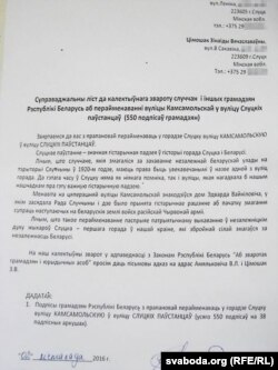 Суправаджальны ліст да калектыўнага звароту падпісалі кіраўнік мясцовай арганізацыі Партыі БНФ Віталь Амяльковіч і грамадзкая актывістка Зінаіда Цімошак.