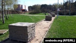 Будоўля «праглынула» ўжо і адгалінаваньне роварнай дарожкі. Раварысты тут яшчэ езьдзяць, але відаць, што фінішу чакаць нядоўга. За дарожкай чалавек у будаўнічай робе ўжо разьбірае тратуарную плітку. Значыць, будоўля разрасьцецца яшчэ мэтраў на 20–50 у напрамку пляжу.