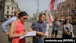 Удзельнікі пікету перадалі ў МУС зварот з патрабаваньнямі, каб міліцыя спыняла спробы фальсыфікацыяў, ня ціснула на апазыцыю і не займалася самаўпраўствам, а абараняла закон. Яны трымалі ў руках партрэт маці зьніклага міністра Захаранкі.