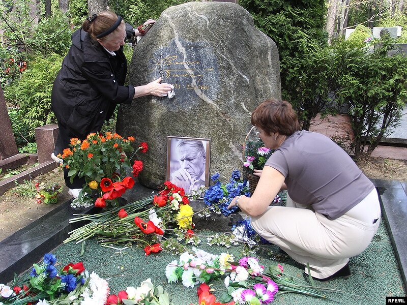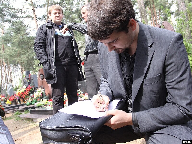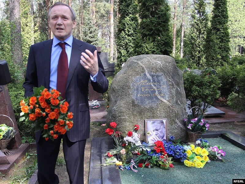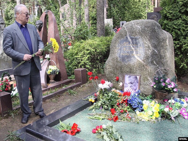 На магілу Васіля Быкава кветкі прынёс і міжнародны гросмайстар Віктар Купрэйчык: