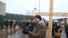 Актывісты «Маладога Фронту» на чале са Зьмітром Дашкевічам пратэстуюць супраць будоўлі бізнэс-цэнтру ў раёне народнага мэмарыялу «Курапаты», дзе былі расстраляныя ахвяры сталінскіх рэпрэсіяў.